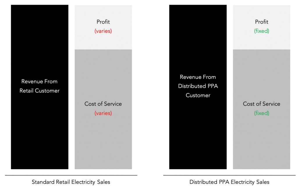 Additionally, this program enables CCAs to lock in a fixed margin on their electricity sales to these customers. Given the variability of wholesale procurement costs (i.e., Cost of Service), CCAs carry profitability risk on retail electricity sales. Under the Distributed PPA program, contract pricing & structure assures CCAs have a fixed margin on electricity sold through the program.